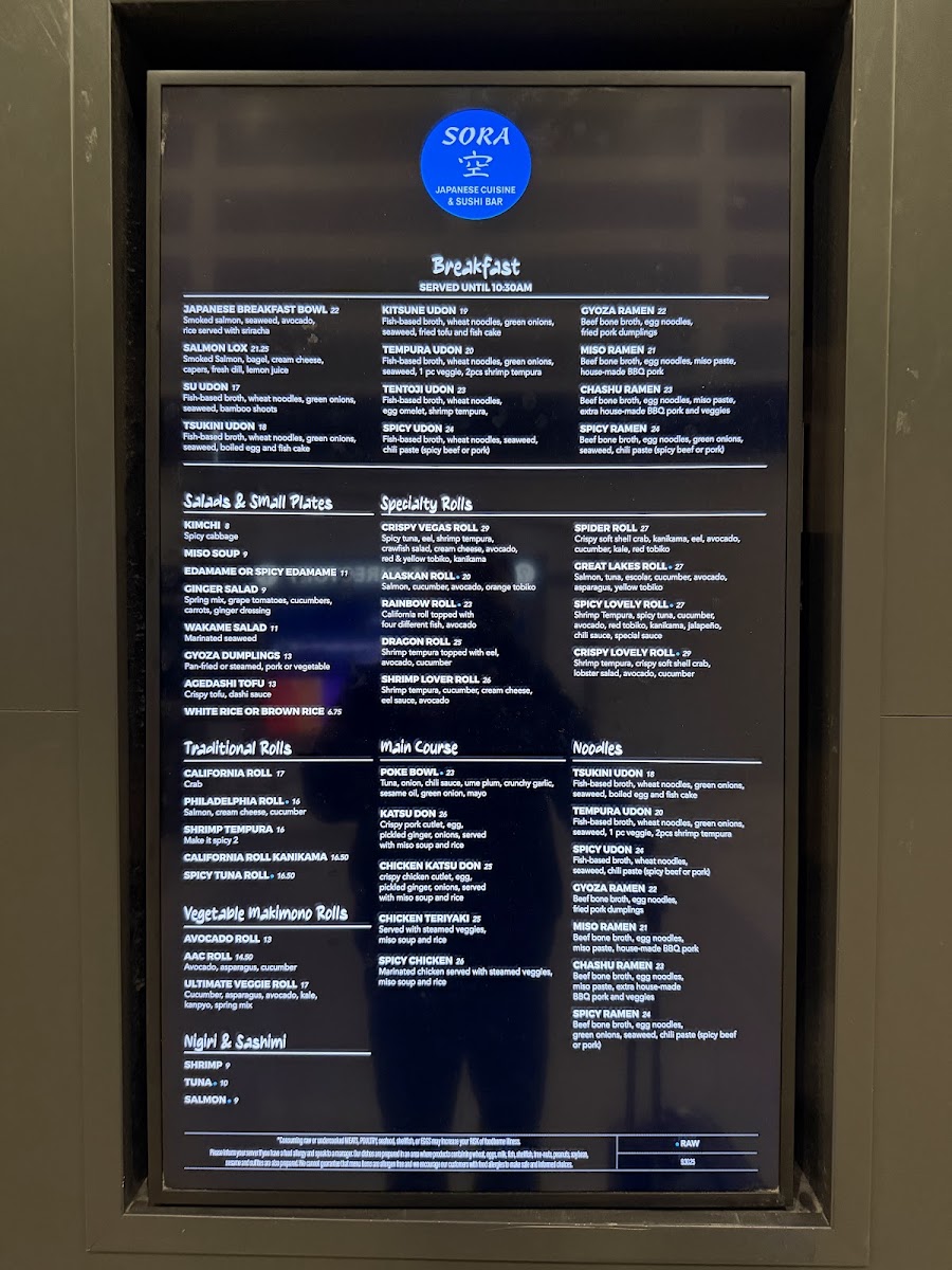 Service at Sora is attentive and friendly, providing a calm atmosphere even when the terminal buzzes with urgency. While the pace may be leisurely—ideal for those with 30 to 45 minutes to spare—this time allows guests to savor each bite without rush. The presentation of dishes is visually appealing, enhancing the overall dining experience and inviting customers to appreciate the art behind each plate.